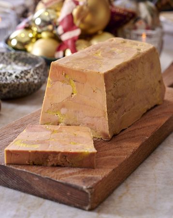 Préparée selon le savoir-faire d’Hélène Darroze, cette terrine de foie gras de canard des Landes révèle une texture fine et fondante, sublimée par une réduction de vin rouge aux épices de Noël, notre “Vin des Dieux”.